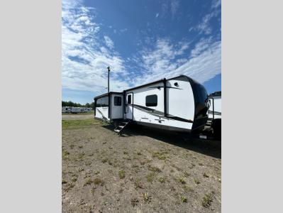 Sleeps 5 Slides 3 Length 35 ft 5 in Ext Width 8 ft Ext Height 11 ft 3 in Hitch Weight 1100 lbs Dry Weight 8559 lbs Cargo Capacity 1341 lbs Fresh Water Capacity 54 gals Grey Water Capacity 45 gals Black Water Capacity 45 gals Furnace BTU 35000 btu Available Beds Queen Refrigerator Type 12V Cooktop Burners 3 Number of Awnings 2 Water Heater Type Quick Recovery Gas/Electric AC BTU 13500 btu TV Info LR 40" Smart TV Awning Info 11' Axle Count 2 Shower Type Radius Electrical Service 50 amp Similar Travel Trailer Floorplans
