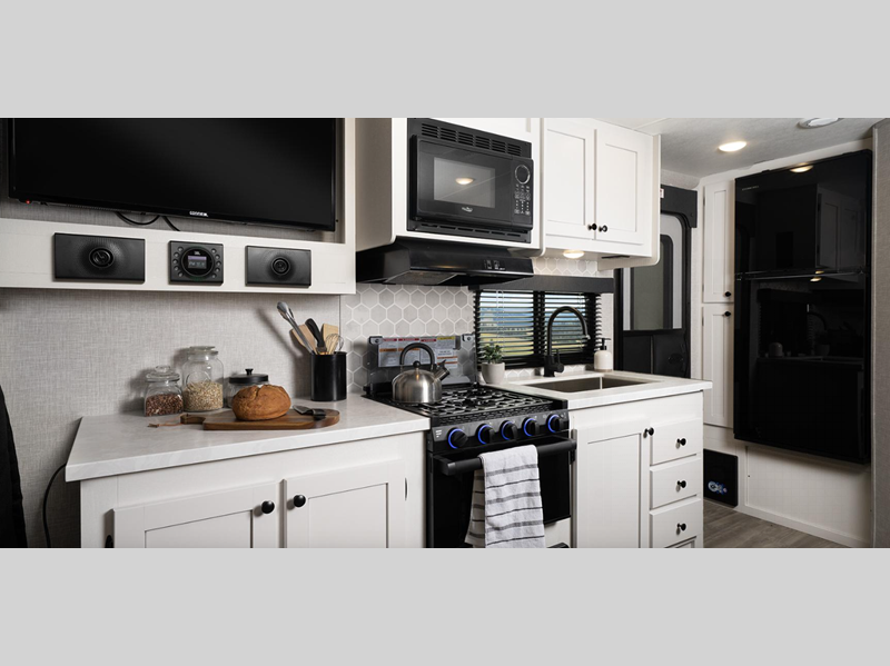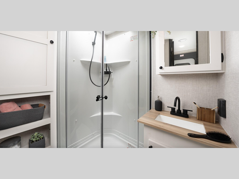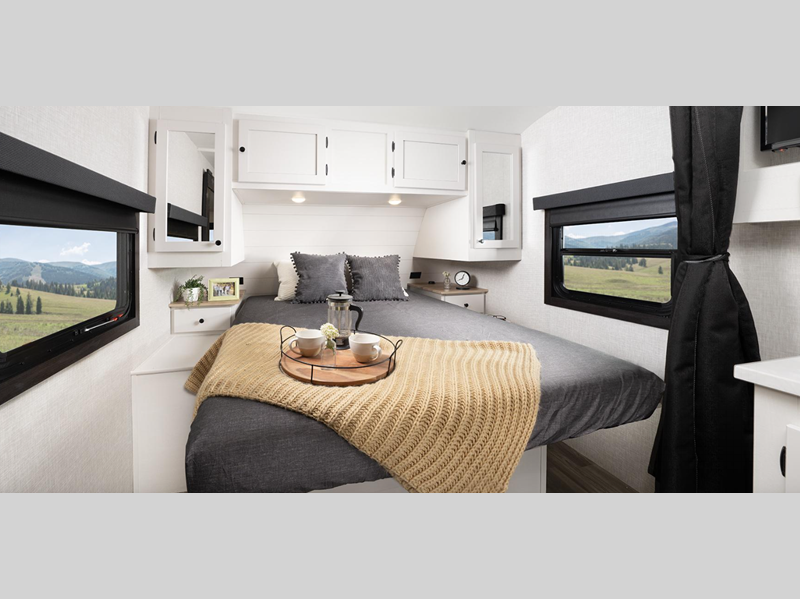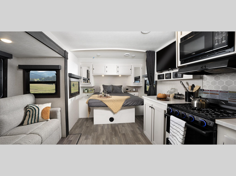 You can expect to find durability with the PVC roofing membrane, Thermal Seal weather insulation package, and TuffShell floor. The mandatory Customer Convenience package adds extra features like roof-mounted quiet series A/C, power tongue jack, and on-demand water heater. The mandatory Lite Package includes a modern graphics package that is sure to turn heads as you travel to the campground, and you're sure to appreciate the Xtend l Solar Package for off-grid capabilities!